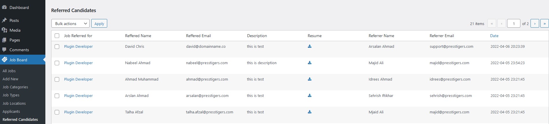 Refer a Friend by PressTigers is a very useful add-on of Simple Job Board to refer a friend for a job opportunity. This is not only a wonderful option to share the job with a friend but also helpful for the employer to find the right applicant.